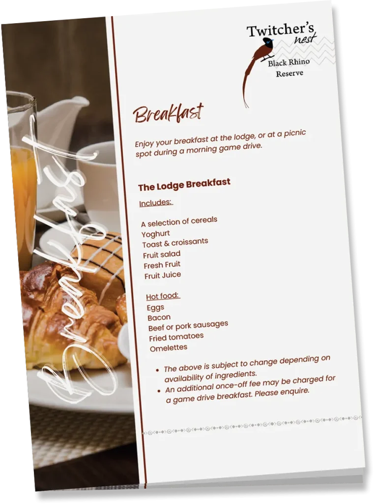 For those seeking a more effortless dining experience, our ranger offers a home-style menu featuring a delicious array of local dishes crafted to satisfy a variety of tastes, all available for an additional charge. If you’re in the mood to explore local cuisine, he can also help you secure a reservation at a nearby lodge restaurant, where you can savour the rich flavours and culinary artistry of the area. Enjoy the best of both worlds during your stay!